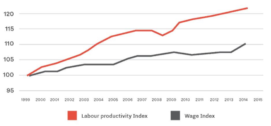 Figure 2: Trends in growth in average real wages and labour productivity in developed economies, 1999-2015